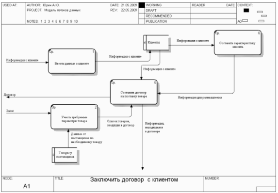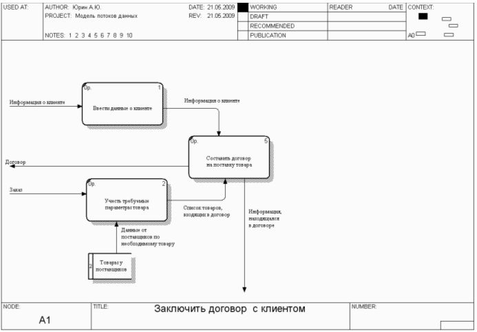 Составить договор. Имеет функцию - Составление проекта договора на поставку с алгоритмом: 1) получить данные клиента; 2) получить рекомендуемые условия оплаты; 3) получить форму договора; 4) составить договор на поставку; 5) внести данные договора в БД «Договоры».