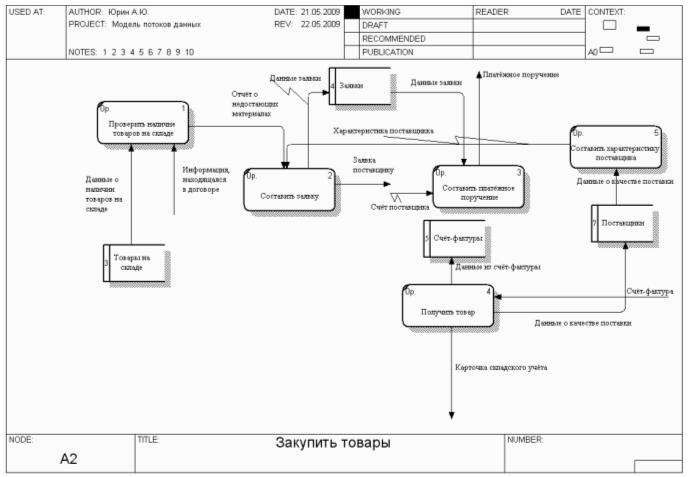 Перечень входных потоков: Заявка поставщику.
