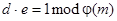 Теперь рассмотрим, как восстановить x по y , m , e . Для этой цели нужно найти число d , удовлетворяющее условию