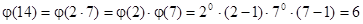 Формул (1.4) и (1.5) достаточно для того, чтобы найти функцию Эйлера для любого целого положительного числа. В нашем случае получаем: