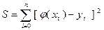Мерой отклонения φ(х) от заданной функции f(x) на множестве точек (хi , yi ) (i=0,1,…,n) при среднеквадратическом приближении является величина S, равная сумме квадратов разностей между значениями многочлена и функции в данных точках: