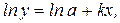 В уравнении ln(у) = а*х + ln(b) заменим ln(у) на у1, а заменим на а0, ln(b) y на b0.