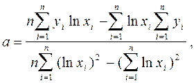 Практически для нахождения приближающей функции в виде степенной (при сделанных выше предположениях) необходимо проделать следующие операции: