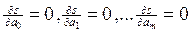 Поскольку здесь параметры а0 , а1, …,аm выступают в роли независимых переменных функции S, то ее минимум найдем, приравнивая нулю частные производные по этим переменным: