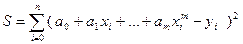 Запишем сумму квадратов отклонений для всех точек х0 , х1, …,хm