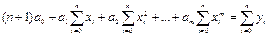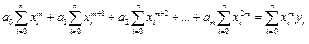 Приравнивая эти выражения нулю в соответствии с уравнениями (4) и собирая коэффициенты при неизвестных а0 , а1, …,аm получаем следующую систему уравнений: