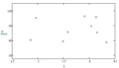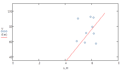 Для решения поставленной задачи необходимо подобрать эмпирическую формулу такую, которая наилучшим образом отражала бы заданное экспериментальное распределение точек (таблица исходных данных). Для этого воспользуемся графическими возможностями программы MathCad.