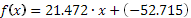 F(x) = -1617.748+ 598.477*x– (-52.578)*x2 :