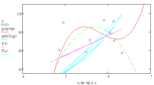 Результаты аппроксимации данных полученными полиномами polyи poly2 представлены на рис. 6