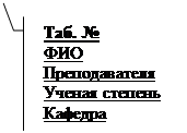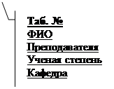 | Таб. № | ФИО | Дисциплина | Таб. № | Дисциплина | Колич. часов |