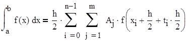 В формуле Гаусса на каждом интервале интегрирования значение функции f(x) вычисляется не в равномерно распределенных по интервалу узлах, а в абсциссах, выбранных из условия обеспечения минимума погрешности интерполяции:
