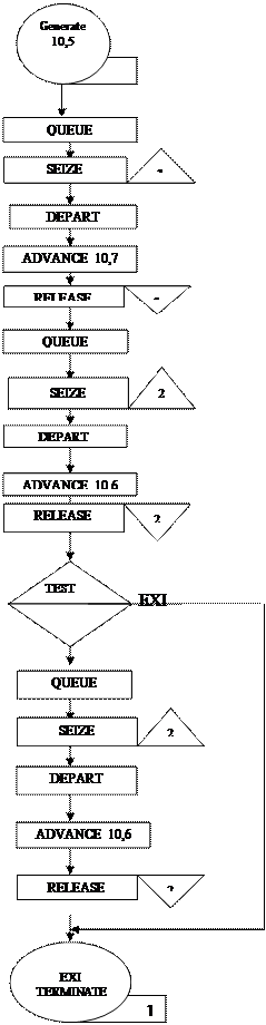 Следует подчеркнуть, что парные операторы QUEUE и DEPART для каждой очереди должны иметь одно и тоже, но свое уникальное имя. Тоже самое касается и операторов SEIZE и RELEASE .