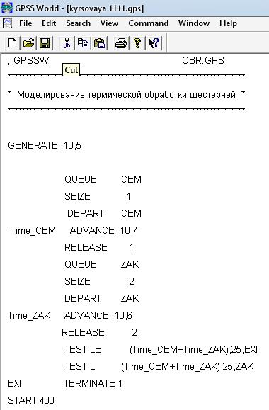 Шестерня поступившая на обработку сначала встает в очередь. Если она есть. Это можно промоделировать оператором QUEUE (Очередь), который в только в совокупности с соответствующим оператором DEPART (Выйти) собирает статистическую информацию о работе моделируемой очереди.
