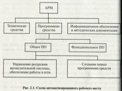 Как показано на схеме, АРМ состоит из технических и программных средств вычислительной техники, а также необходимой методики аналитической документации, позволяющей пользователю эффективно взаимодействовать с данными средствами.