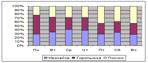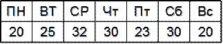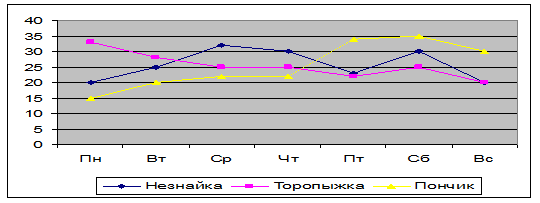 | Незнайка | 20 | 25 | 32 | 30 | 23 | 30 | 20 |