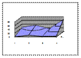 В трехмерной гистограмме сравнение данных производится по двум осям. Показанная на рисунке трехмерная диаграмма позволяет сравнить объемы продаж в Европе за каждый квартал с объемами продаж в двух других регионах.