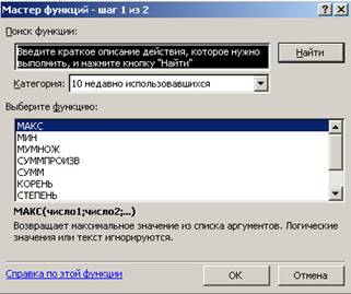 Реферат: Контрольная работа: Табличний процесор Excel Майстер функцій
