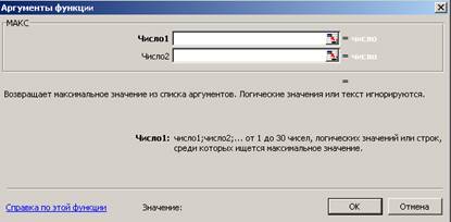Після вибору відповідної функції і натискання клавіші «ОК», з’являється вікно, в якому власне і відбувається здійснення обчислень. Якщо аргументів функції багато, у вікні автоматично збільшується кількість потрібних для обчислення полів, але не більш як 30.