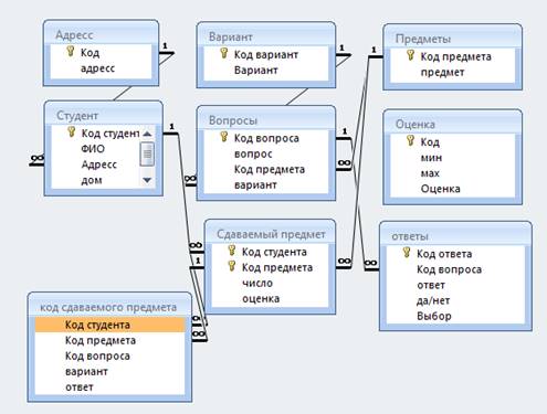 1) Формирование теста – (Создается на основе запроса на выборку «Копия запрос3») из всех возможных вариантов взять один в произвольном порядке и добавить вопросы соответствующего варианта в таблицу «Код сдаваемого предмета»