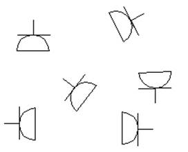 Блоки, як визначені в кресленні, так і записані в окремі файли, вставляються тим самим способом. Після того, як обране місце розміщення, можна змінити розмір і орієнтацію блоку. Ця можливість ідеальна для бібліотеки деталей. Деталі можуть бути створені по розміру одного вузла, а потім при необхідності масштабовані і переорієнтовані. На малюнку показана штепсельна розетка, вставлена з різними масштабами і під різними кутами нахилу.