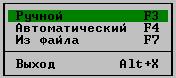 1 Ввод: «Ручной», «Автоматический», «Из файла» и «Выход» (рисунок 9).