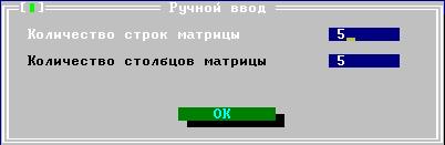 Необходимо будет ввести количество строк и столбцов матрицы. Затем нажимаем клавишу «ОК», появляется окно (рисунок 13) и вводим элементы матрицы.