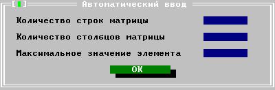 Необходимо будет ввести количество строк и столбцов матрицы, а также максимальное значение элемента. Затем нажимаем клавишу «ОК» и результат автоматического заполнения элементов матрицы появится в окне (рисунок 14).