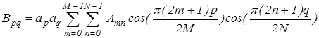 Алгоритм двомірного дискретного косинусного перетворення [4, 5, 7] реалізується наступним виразом: