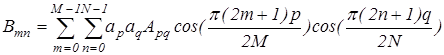 Алгоритм зворотного дискретного косинусного перетворення [4, 5, 8] реалізується наступним виразом: