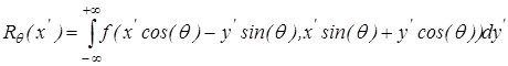 . Алгоритм прямого перетворення Радона заключається в обчисленні проекцій зображення відносно конкретних напрямків. Так, проекція функцій двох змінних f