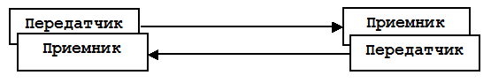 Дуплексный режим – одновременные передача и прием сообщений. Это – наиболее скоростной режим работы. Он позволяет эффективно использовать вычислительные возможности быстродействующих ЭВМ в сочетании с высокой скоростью передачи данных по каналам связи. Пример дуплексного режима – телефонный разговор (рис. 6).