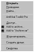 Доступными для общего использования в сети могут быть только ресурсы (диски, папки и принтеры), предназначенные для этого их владельцем, то есть пользователем, работающим с компьютером, на котором эти ресурсы находятся. Чтобы открыть ресурс для общего пользования, необходимо в соответствующем окне (Мой компьютер или Проводник для дисков и папок, Принтеры для принтеров) вызвать контекстное меню щелчком правой клавиши мыши (рис. 21) и выбрать в нем команду Доступ . Вид окон представлен на рис. 22. |