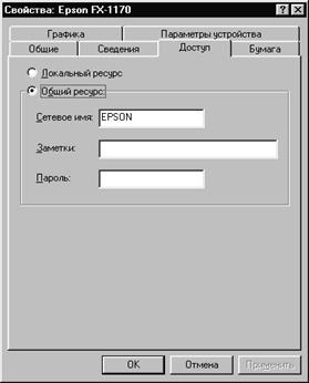 Сетевое имя ресурса обычно предлагается системой и не отличается от имени этого ресурса на локальном компьютере (см. рис. 22), но при необходимости может быть задано произвольно. Заметки – это комментарий к ресурсу, облегчающий ориентацию в сети.