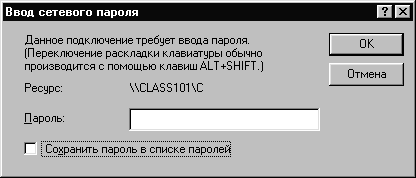 Если подключаемый ресурс будет использоваться часто, а предоставляющий его компьютер постоянно включен, то имеет смысл установить флажок Автоматически подключать при входе в систему . Если подключаемый ресурс защищен паролем, то откроется окно для ввода (рис. 24).