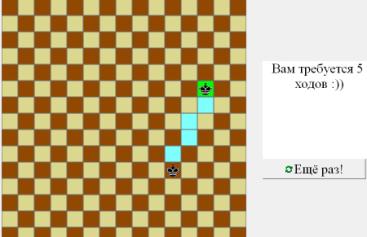 После этого программа должна показать кратчайший путь (пути) движения короля, выделяя его другим цветом.