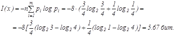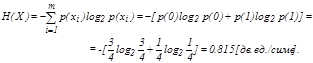 Пример 2. Вычислить энтропию источника независимых сообщений, выдающего два символа 0 и 1 с вероятностями p(0) = 3/4, p(1) = 1/4 .
