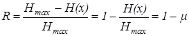 При этом H(x) = Hmax (x) и избыточность равна R = 0 .