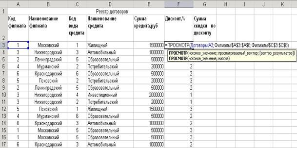 =ПРОСМОТР(Договоры!A3;Филиалы!$A$3:$A$8;Филиалы!$C$3:$C$8)