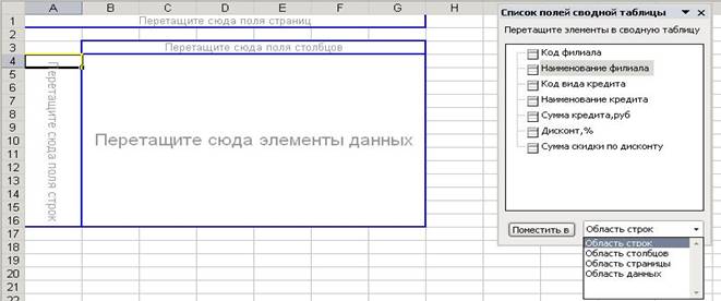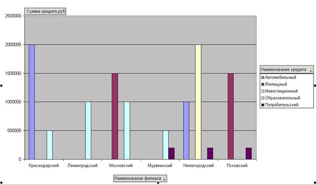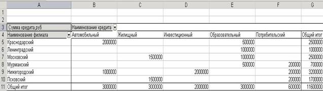 2)построить соответствующую сводную таблицу, предусмотрев возможность одновременно отслеживать итоги и по виду кредита.
