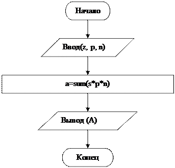 6. Построим блок-схему алгоритма для вычисления полученной функции A=∑(Z(I)*P(I)*N(I))