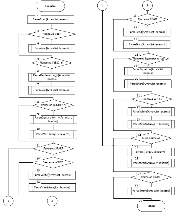3.4.3 Опис програми реалізації синтаксичного та семантичного аналізатора