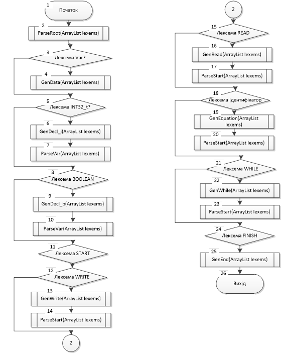 3.5.2. Опис програми реалізації генератора коду……………………………. 24