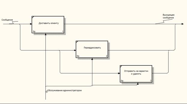 После проверки лабораторией сообщение поступает дальше на определение администратором класса спамности, где администратор выбирает, что делать с данным сообщением. В результате проверки каждое входящее письмо получает специальную "метку", соответствующую определенному уровню его "чистоты" и смысловому содержанию. Далее, в соответствии с правилами обработки и пользовательскими настройками системы, сообщение может быть доставлено по назначению, удалено или перенаправлено на другой адрес. Данная схема представлена на рисунке 5.