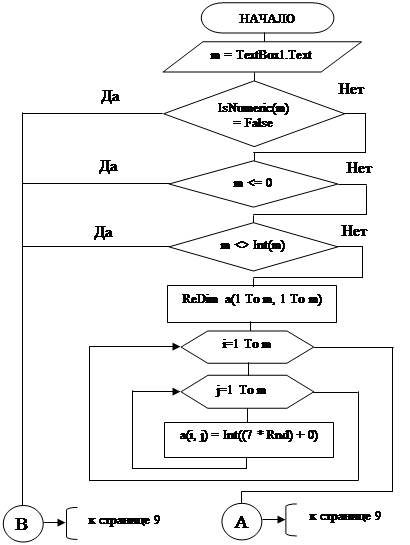 Блок-схема процедуры заполнения квадратной матрицы представлена на рисунке 5: