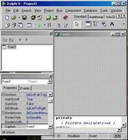 Среда Delphi - это сложный механизм, обеспечивающий высокоэффективную работу программиста. Визуально она реализуется несколькими одновременно раскрытыми на экране окнами. Окна могут перемещаться по экрану, частично или полностью перекрывая друг друга, что обычно вызывает у пользователя, привыкшего к относительной “строгости” среды текстового процессора Word или табличного процессора Excel, ощущение некоторого дискомфорта. После приобретения опыта работы с Delphi это ощущение пройдет, и вы научитесь быстро отыскивать нужное окно, чтобы изменить те или иные функциональные свойства создаваемой вами программы, ибо каждое окно несет в себе некоторую функциональность, т. е. предназначено для решения определенных задач.