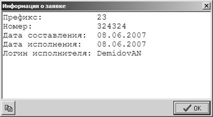 4) Пользователю остаётся нажать на кнопку «Исполнить заявку» на панели действий. После успешного внесения заявки в статусной строке внизу формы отображается соответствующее сообщение. Эта строка специально предусмотрена для этого.
