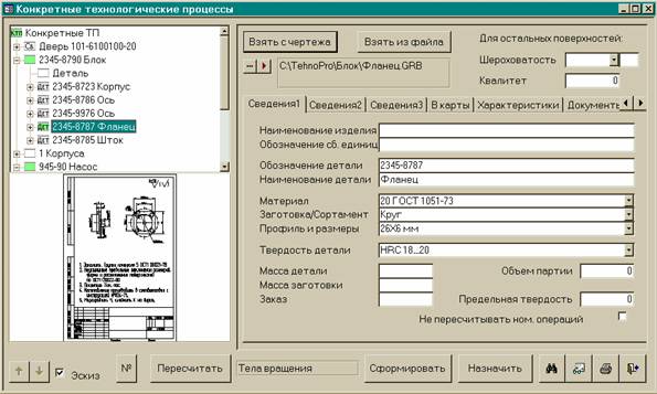 При проектировании технологического процесса в системе «ТехноПро» технолог общается с ЭВМ на языке, максимально приближенном к его предметной области. Он оперирует со знакомыми ему понятиями: деталь, операция, переход, карта, эскиз и т.д. Сведения о детали можно вводить с клавиатуры или считывать с введенного заранее в системе T-FLEX электронного чертежа – см. рис. 2.