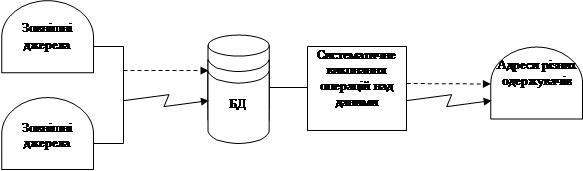 | Збирання, реєстрація | Передача | Організація пам'яті збереження інформації | Оброблення БД | Передача | Споживання інформації |