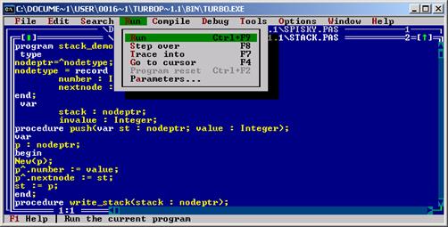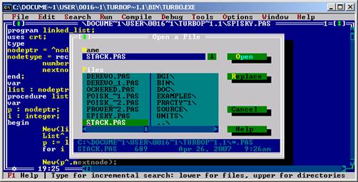 Стек (stack) - лінійний список, у якому всі видалення й доповнення (і звичайно всякий доступ) робляться з одного кінця списку. Стек - частина пам'яті ОЗУ комп'ютера, що призначається для тимчасового зберігання байтів, використовуваних мікропроцесором; при цьому використається порядок запам'ятовування байтів “останнім увійшов - першим вийшов”, оскільки таке добавлення й видалення організовувати простіше всього, то операції здійснюються дуже швидко. Дії зі стеком виконуються за допомогою регістра покажчика стека. Будь-яке ушкодження цієї частини пам'яті приводить до фатального збою. Стек у вигляді списку (pushdown list) - стек, організований таким чином, що останній елемент, що вводить в область пам'яті, розміщується на вершині списку. З стека ми завжди виключаємо "молодший" елемент із наявних у списку, тобто той, котрий був включений пізніше інших. Для черги справедливо в точності протилежне правило: видаляється завжди "старший" елемент; вузли залишають список у тім порядку, у якому вони в нього ввійшли. Стеки дуже часто зустрічаються в практиці. Простим прикладом може послуговувати ситуація, коли ми переглядаємо безліч даних і утворюємо список особливих станів або об'єктів, які повинні оброблятися пізніше; коли первісна безліч оброблена, ми повертаємося до даного списку й виконуємо наступну обробку, видаляючи елементи зі списку, поки список не стане порожнім. Для цієї мети придатні як стек, так і черга, але стек, як правило, зручніший. При вирішенні завдань наш мозок поводиться як "стек": одна проблема приводить до іншої, а та у свою чергу до наступної; ми накопичуємо в стеці ці завдання й підзавдання й забуваємо про них у міру того, як вони вирішуються. Аналогічно процес входів у підпрограми й виходів з них при виконанні машинної програми подібний до процесу функціонування стека. Стеки особливо корисні при обробці мов, що мають структуру вкладень. Взагалі, стеки найчастіше виникають у зв'язку з алгоритмами, що мають явно або неявно рекурсивний характер.