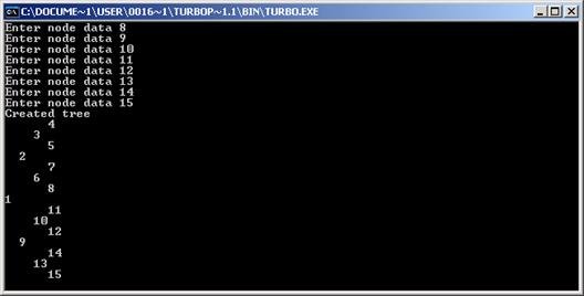 Виконати її, створивши бінарне дерево, кількість вузлів якого визначена відповідно до варіанту №15. Навести зображення дерева. Деревоподібна архітектура має найменший діаметр серед всіх існуючих, який дорівнює для бінарного дерева 2lg ( (P+1) /2) - відстань між двома листами, шлях між якими проходить через корінь. Для k-арних дерев діаметр зменшується зі збільшенням k. Недоліком деревоподібних мереж є те, що обмін даними між процесами відбувається за лінійний час, а процес-корінь є вузьким горлом при передачі інформації. Багатопроцесорний комп'ютер з паралельною обробкою інформації називається деревовидною машиною (tree machine) [33], якщо його процесори сполучені зв'язками так, що утворюється топологія повного бінарного дерева. Такий комп'ютер має 2d-1 процесорних елементів для деякого d, які розбиті на d рівнів, пронумерованих від 1 до d. Кожний процесор на рівні j, 1ЈjЈd, зв'язаний з єдиним процесором на рівні j-1 (батьком), та з двома процесорами на рівні j+1 (синами). Зв'язки між процесами розташовані таким чином, що безпосередньо обмінюватися інформацією можуть лише батько з сином. Єдиний процесор на першому рівні називається коренем в топології дерева, а процесори на рівні d - листами. Корінь не має батька, а листи не мають синів. На малюнку 15 зображена топологія деревовидної машини з d=4 рівнями, яка містить 24-1 = 15 процесорних елементів.
